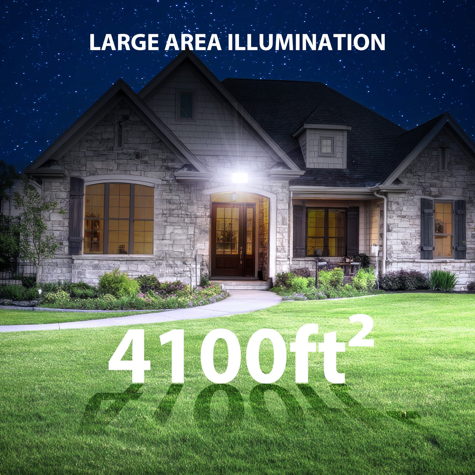 - Wide-Angle Illumination: 120° wide beam angle covers large areas with even lighting. Frosted lens reduces glare, offering soft, eye-friendly illumination. Ideal for yards, garages, and workshops