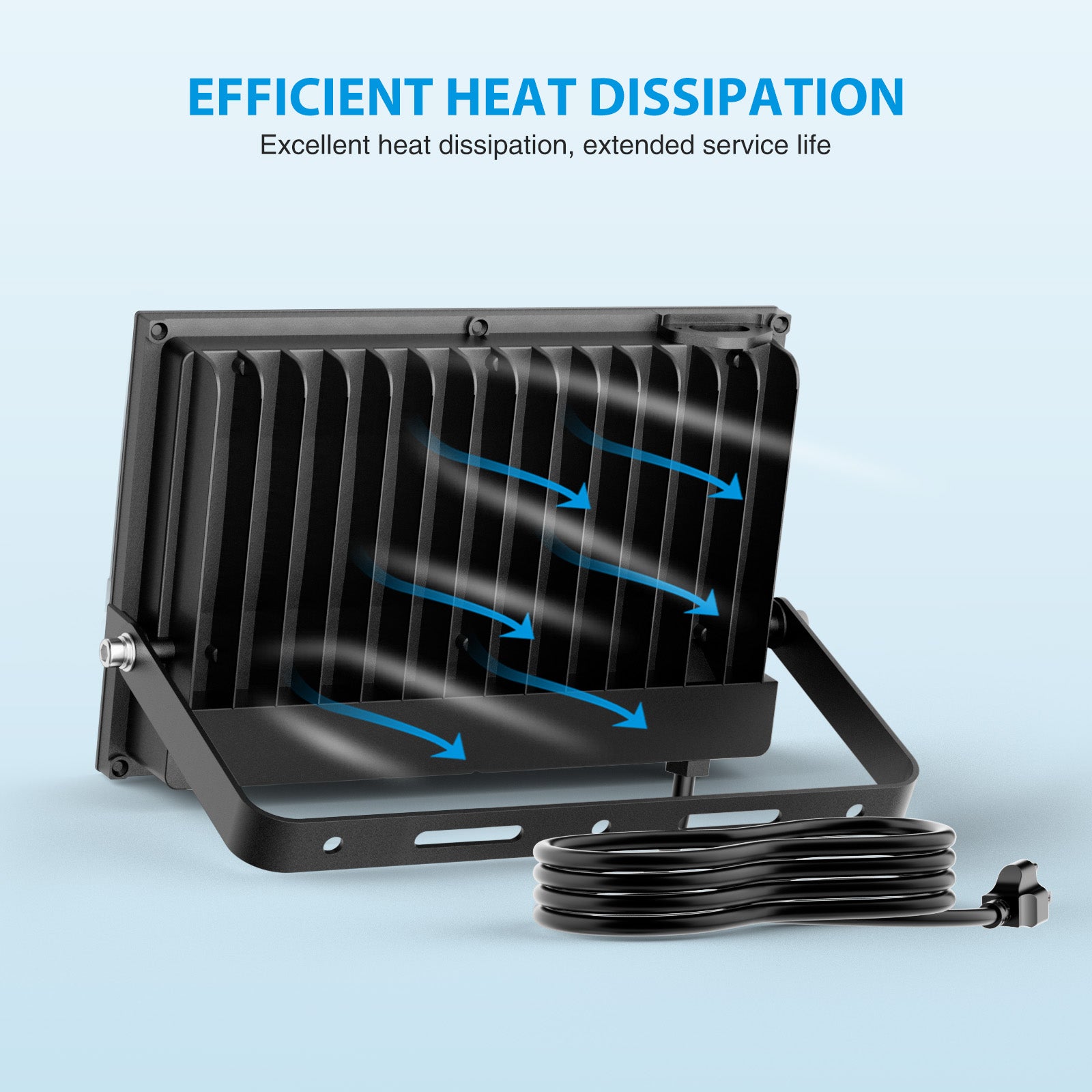 - IP66 Waterproof & Efficient Cooling: Built with die-cast aluminum and long-fin heat sink for fast cooling. IP66 rating ensures reliable performance in heavy rain, snow, or extreme weather – all-weather flood lights outdoor solution
