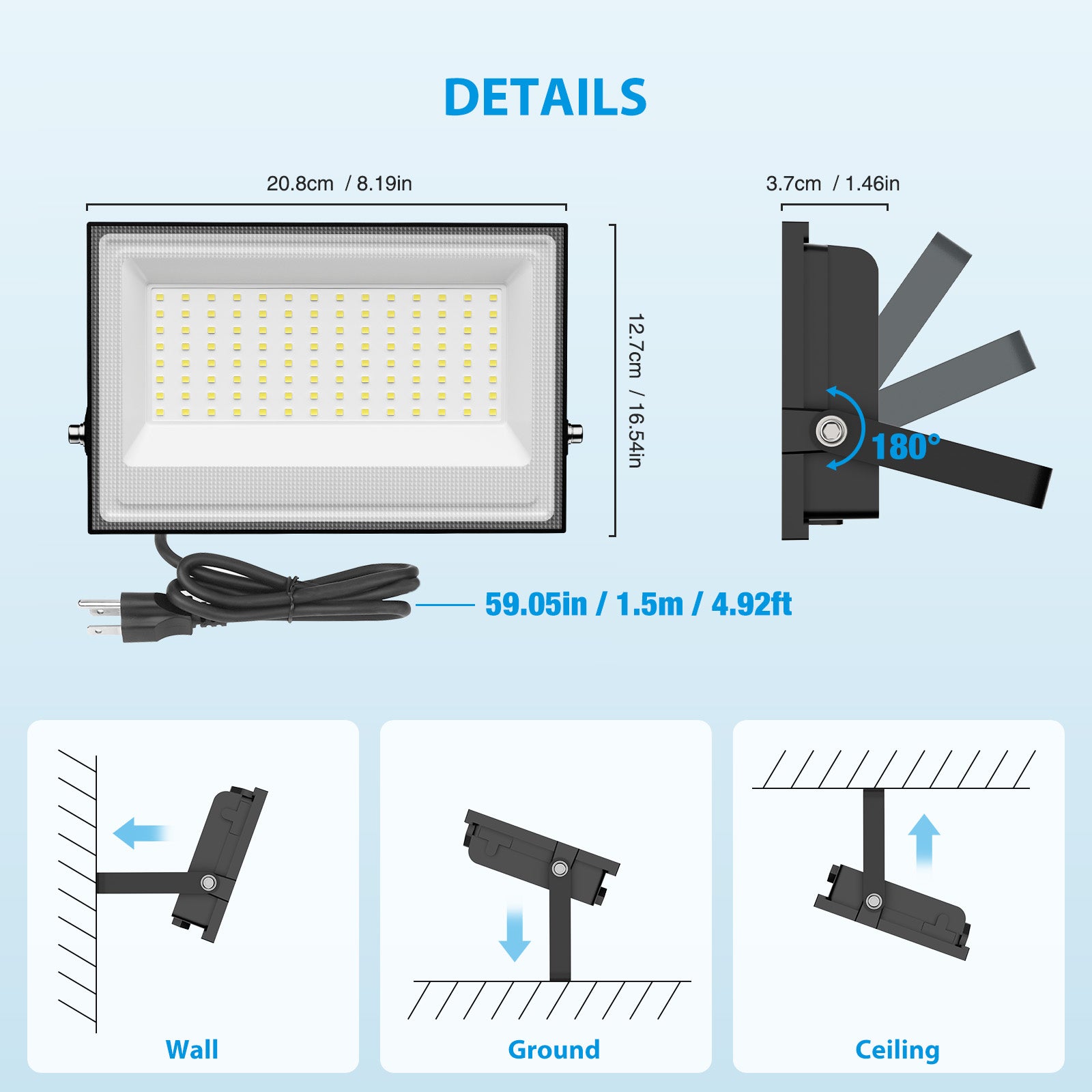 - Flexible Installation: 180°adjustable bracket allows easy mounting on walls, ceilings, or floors. Can also be used with a tripod as a portable work light. perfect for home, garage, and job site security